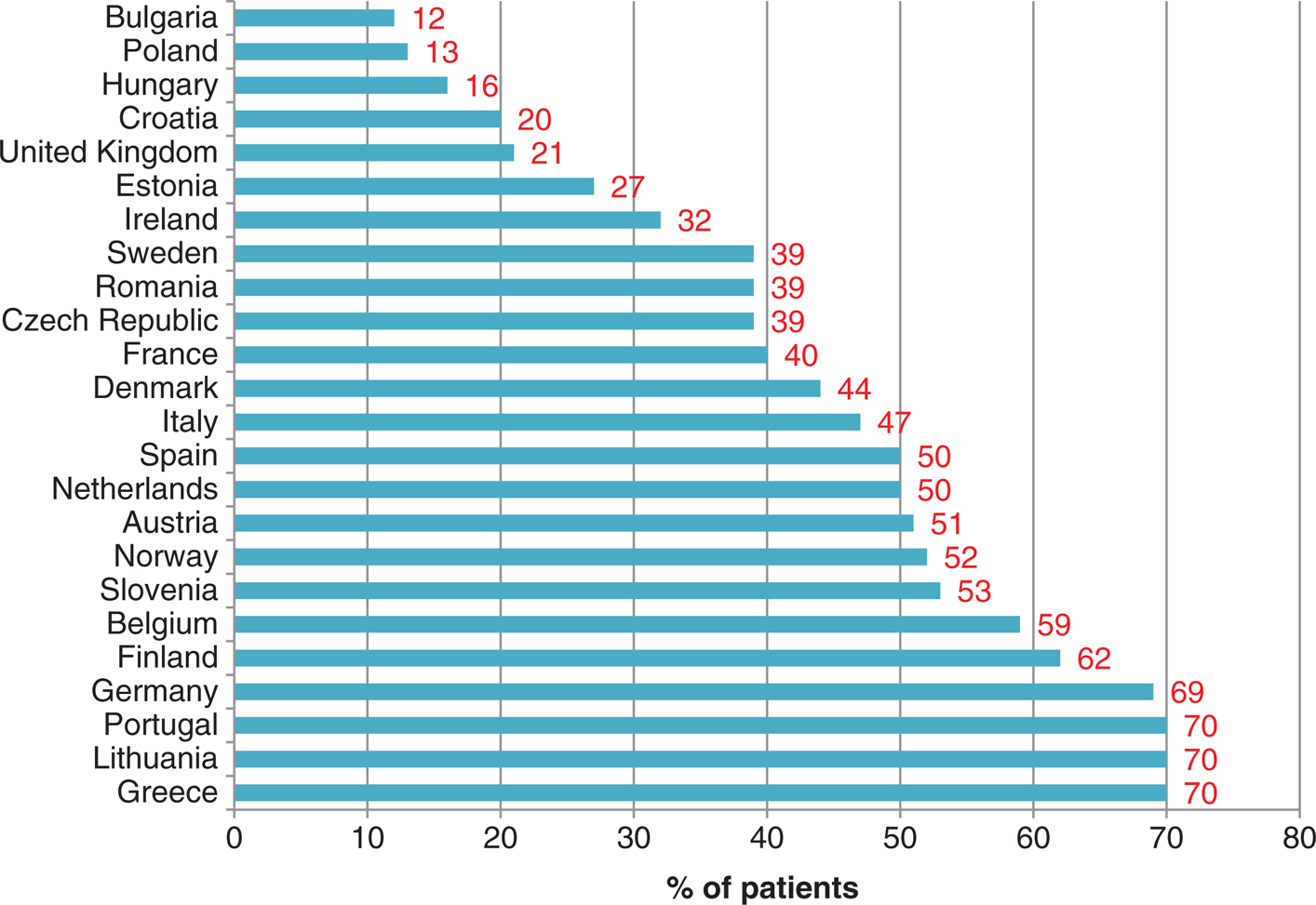 Figure 1 Percentage of MS patients who have access to DMDs in Europe.