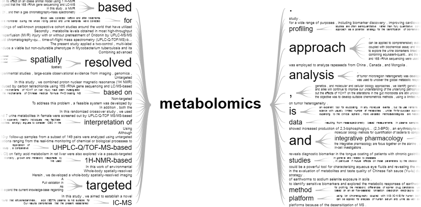 Figure 1 Tree mapping of the most frequent terms in the metabolomics field. Data mining from abstracts indexed in PubMed using as primary key word – “metabolomics” in “Pub-tree” available at https://esperr.github.io/pub-trees/.