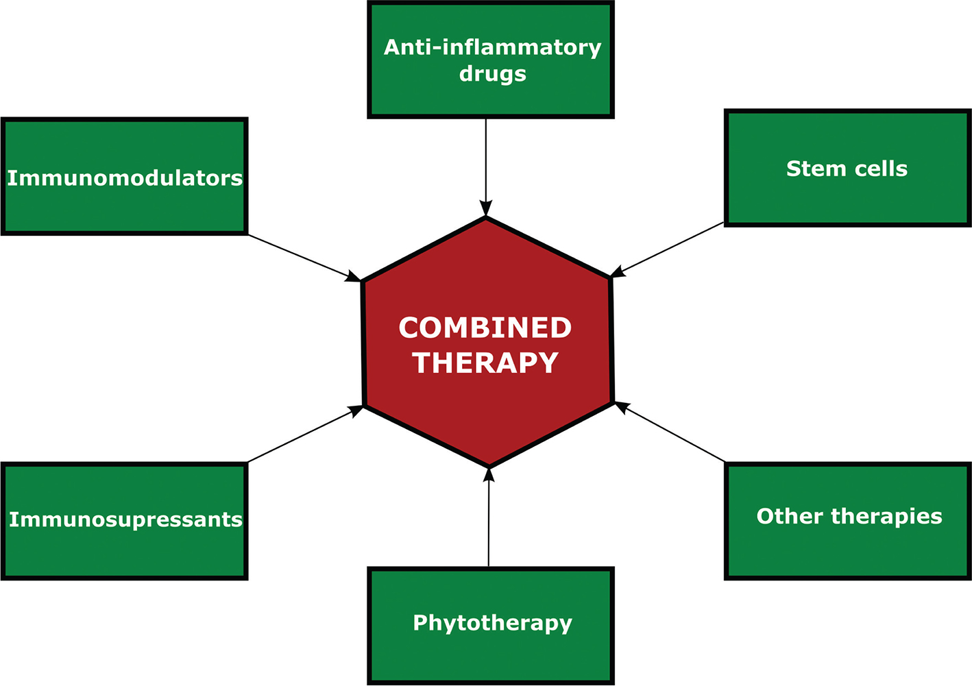 As cerebral ischemia is characterized by a chain of reactions of several complementary processes which include excitotoxicity, oxidative stress, neuroinflammation, activation of proapoptotic factors, disruption of ionic homeostasis and increased permeability of BBB, the logical approach for therapy would be an adjuvant therapy that would include pharmacological candidates that act on all of these phenomena. Choudhary et al. (75) suggested the use of a neuroprotective cocktail consisting of different therapeutic approaches and pharmacological candidates that would target different phenomena of cerebral ischemia contributing to neurodegeneration. Although individual drug candidates have given promising results in preclinical studies, the effects of combined therapy should be examined in preclinical models that faithfully reflect the state of cerebral ischemia. It should be noted that younger animals without co-morbidities were often used in preclinical studies, their post-ischemic recovery being faster and more complete than in the older animals, which makes translation questionable. Hence, the critical factor for translation is the fact that cerebral ischemia mainly affects older people who have other co-morbidities (76). Modulation of inflammatory pathways has been postulated as a robust strategy in altering the secondary cell death of the ischemic brain (77, 78). Inflammatory responses intrinsic to the brain or derived from peripheral organ-specific infiltrating cells, including neutrophils, T cells, and monocytes/macrophages, mediate the secondary neurodegeneration seen in stroke (79). Studies examining therapeutic approaches for the treatment of neuroinflammation included pharmaceuticals targeting microglia, pro-inflammatory and anti-inflammatory cytokines, pro-inflammatory transcription factor NF-κB, high mobility group 1 proteins, the endocannabinoid system, and metalloproteinases (80).