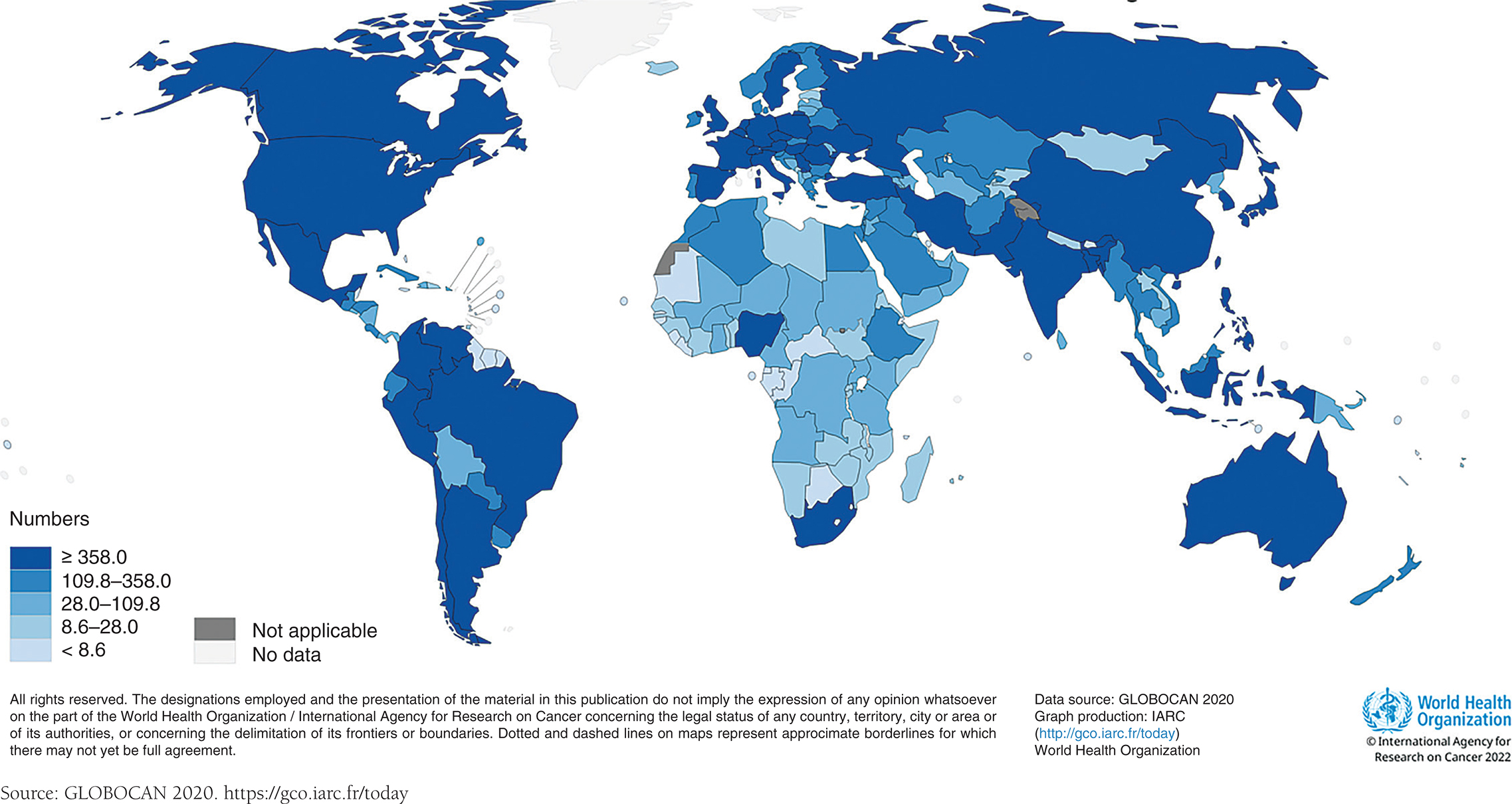 Figure 1. World map of estimated number of new testicular cancer cases in 2020 (11).