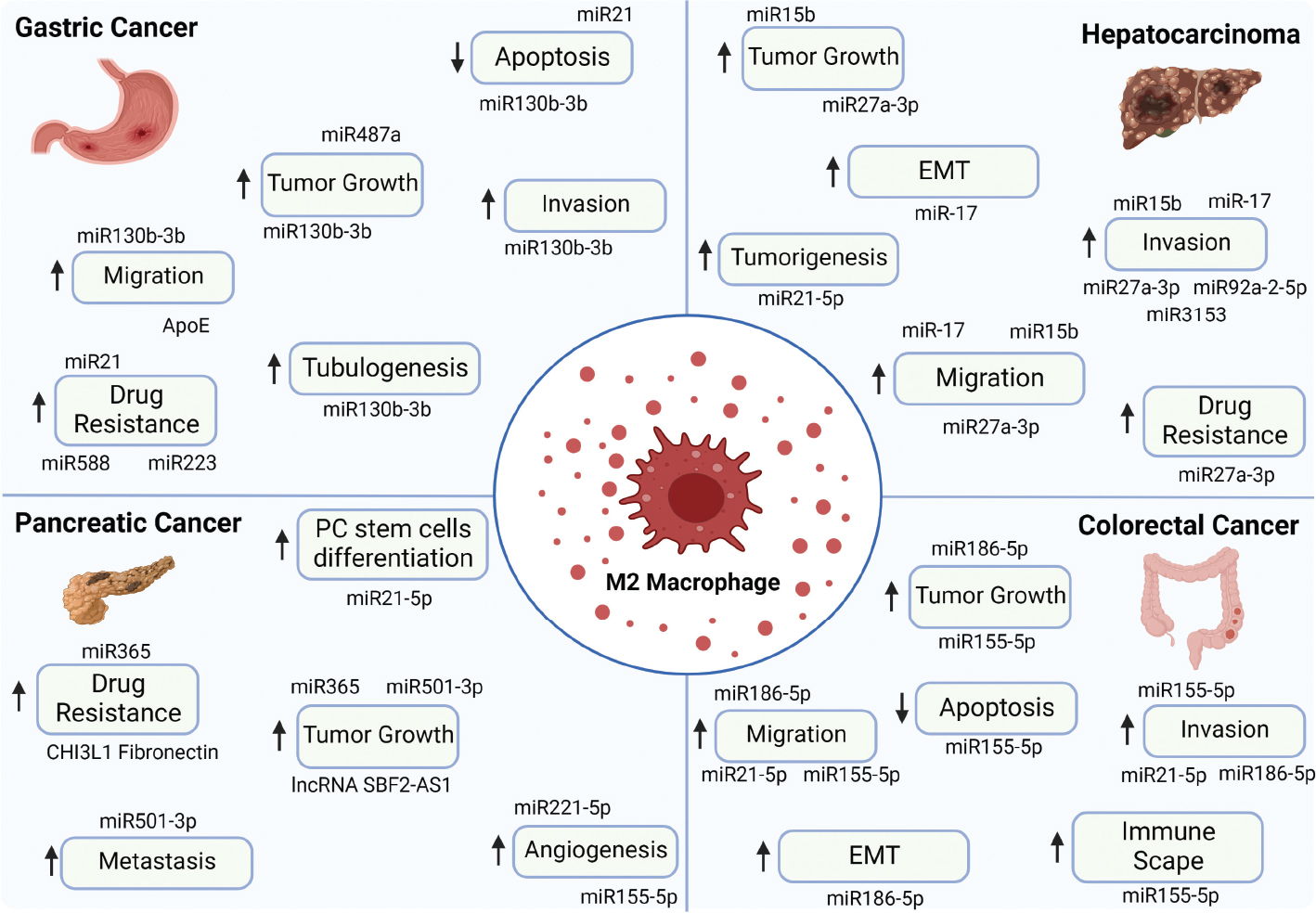 Keywords: extracellular vesicles in gastrointestinal cancers; gastrointestinal cancer; macrophage; macrophage-derived extracellular vesicles; microRNA.