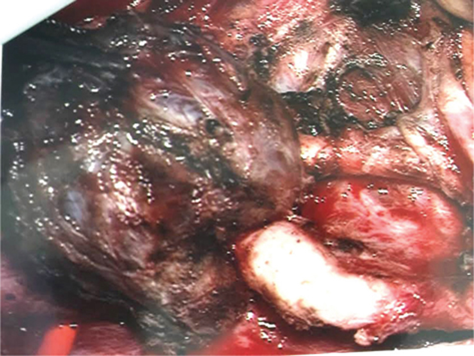 Figure 6 Intraoperative view of a massive CBP being separated from the ICA.