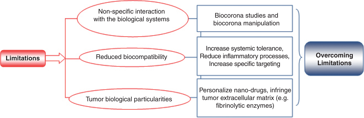 In order to improve their efficacy, nanodrugs should overcome these major limitations and several means of overcoming them are further described in this subsection. An overview of the main issues discussed in this chapter is presented in Figure 1.