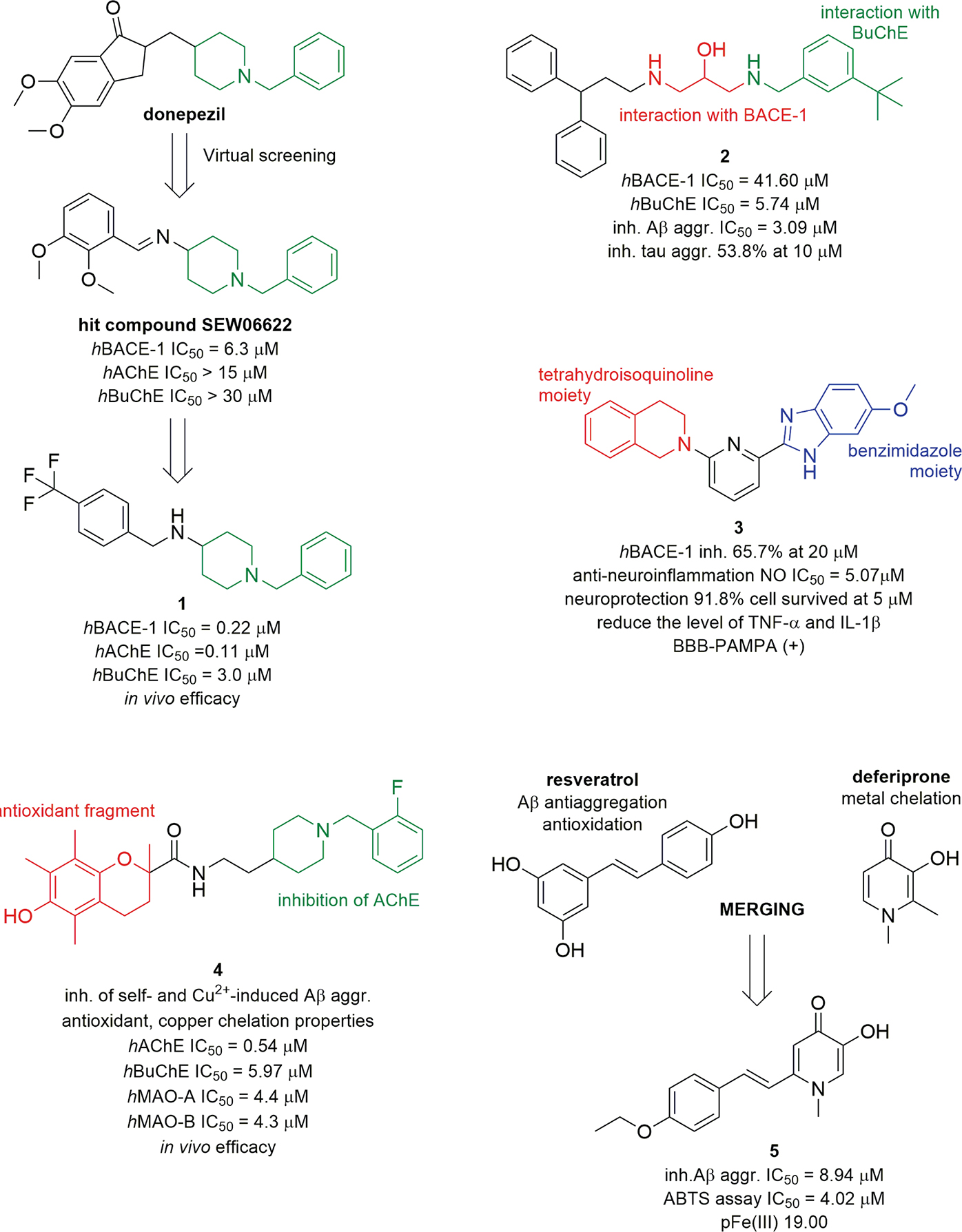 Figure 1 Multifunctional agents focusing on disease-modifying targets: BACE-1, Aβ, and others.