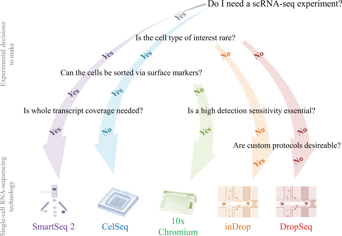 Figure 1. Flow chart guide to the most suitable scRNA-seq technique depending on the scientific problem and the boundary conditions.