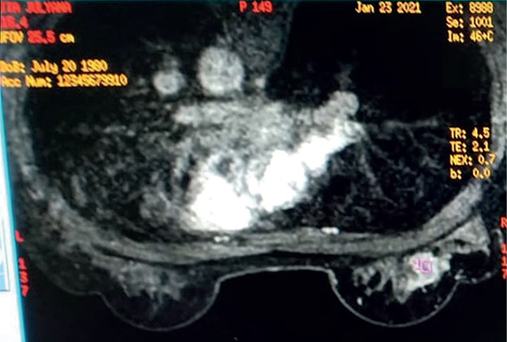 Figure 2. Malignant findings on breast MRI. Image provided by Division of Oncology, Department of Surgery, Faculty of Medicine, Universitas Sumatera Utara)