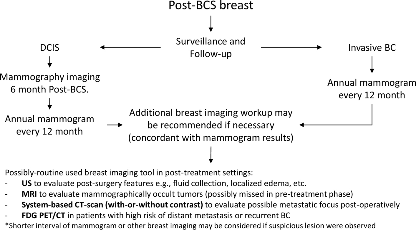 Figure 5. Imaging algorithm of breast imaging in post-treatment phase of management as adapted from NCCN 2022 guidelines (70).