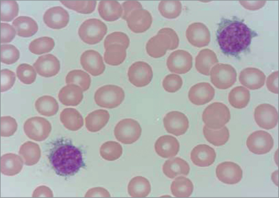 In HCL-v, the neoplastic lymphoid cells are hybrids, with an intermediate morphology between prolymphocytes and hairy cells. In SDRPL, villous lymphoid cells have a polar distribution of the villi and a small or undetectable nucleolus in the PB. HCL-v is characterized by lymphocytosis with lymphoid cells of relatively large size, prominent nucleoli, and cytopenias without monocytopenia. In HCL-v and SDRPL, the neoplastic cells do not express CD25 or CD123 and the BRAFV600E mutation is lacking. However, the relationship between HCL-v and SDRPL remains unclear (3, 5). In this chapter we concentrate on the pathogenesis, laboratory and clinical characteristics, and treatment of classic HCL.